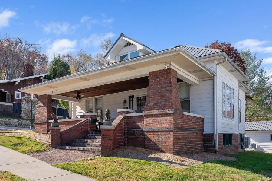 Continue as an active AirBnB, or use for your primary residence. Beautifully maintained Craftsman Bungalow in the heart of Downtown French Lick. Moments away from the Historic French Lick Hotel and nearby shopping, restaurants, and entertainment. This appealing home features TONS of updates! Step inside the original front door and notice the hardwood floors that highlight the huge living room which spans the entire width of the home. Pass through the oversize opening into a dining room, large enough to easily accommodate six or more dinner guests. Adjacent to the dining room is an updated kitchen with new flooring and all newer stainless-steel appliances. Off the kitchen you will find a nicely sized laundry/mud room with a newer washer and dryer, and the first of two beautifully renovated full bathrooms. Also from the dining room is a hallway leading to the 2 first floor bedrooms, and a second nicely renovated full bath, as well as stairs leading to a fully remodeled third bedroom and half bath. Other recent updates include new HVAC, new roof for home and garage, updated landscaping, and new light fixtures and ceiling fans. This home is being sold fully furnished and all personal belongings on site are included in the sale. (furniture, fixtures, art, appliances, electronics, etc.)