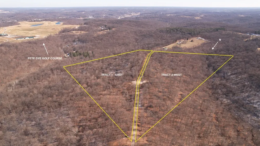 Tract 2: Hilltop cabin site location with impressive western views and live water creek close to the historic town of French Lick. Located along a paved county road with access to both water and electrical services, this property offers the perfect location for an Airbnb or just a small cabin getaway that is only a few minute's drive into town.