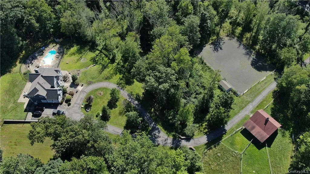 All you ve imagined and more with this 5000+ sq. ft. 16 yr yng Colonial on 15+ secluded, not isolated acres backing to unbuildable 1000+ acres of Harriman State Park. As you pull into your inviting pillared driveway, you pass the horse barn & riding arena and up to the circular drvwy. For all equestrians the 36 x 36 barn has 4 stalls/wash stall/tack feed room/hay loft. Additionally, 4 paddocks with electrical fencing. The homes 2 story Entry Foyer has the Frml Living Rm and Dining Rm to your sides. Also is a first floor Guest Bdrm/en suite Full Bth. The dream Kitchen features granite cntrs, tiled bksplsh, Sub Zero Fridge & access to the paver Patio. A 2 story Grt Room boasts a custom stone frplc. Mstr Bdrm with tray ceiling offers a Sitting Rm, Mstr Bth with walk in shwr and whrpl tub and huge walk in clst. 3 add'l Bdrms & 2 Full Baths offer room for everyone else. Then is the finished walkout Base't that steps out to the private euphoric yard with heated ingrnd pool w/spill over spa.
