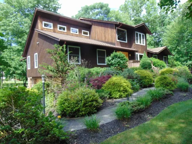 Nestled off the road for privacy, this beautifully landscaped contemporary home is a must see. Located in the town of Newburgh, in the Marlboro School District, this 3 bedroom/3 bath home has much to offer. The step-down master bedroom offers a newly renovated bathroom with an oversized tub and oversized double shower, a huge walk-in his and hers closet with plenty of storage space. Living room features cathedral ceilings with an abundance of natural light from the skylights. Kitchen features granite countertops, high end appliances and island seating. In addition, the main floor features a formal dining room, sunroom leading to the deck, study, laundry room, and half bathroom. Upstairs offers 2 bedrooms with large closets, full bathroom and an aerial view of the living room. Downstairs offer a foyer area, family room, exercise room, workshop and 3 car garage with door openers. Many updates and features include all new Anderson windows, recently replaced roof with 50 year shingles, refinished cedar siding, Trek decking, exterior sprinkler system, security system with cameras, and a whole-house generator. Located minutes from shopping and the NYS Thruway. Do not miss out on this newly listed gem.