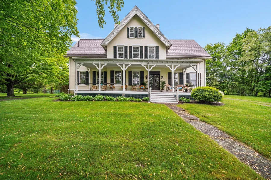 In the heart of Hambletonian country, Chester, NY is “Brook Manor” the former horse training estate of financier and Tuxedo Park resident, Richard Delafield. The estate, now an assemblage of 3 parcels of just under 10 acres, has a rich history and was home to Delafield’s farm Superintendent. Perched on a sweeping lawn above Main Street, this stately brick, slate, and carpenter’s lace adorned manor offers compound-level privacy and amenities - including a separate cottage - yet is accessible to the village. Circa 1851, the approx. 4,000 sq. ft. manor home was originally part of the 128-acre “Brook Farm”, named after Delafield’s Tuxedo Park property. It was designed by owners prior to Delafield for grand entertaining. Out front, a covered porch greets you with views over Chester Village. Inside are the formal center hall, parlor, dining and drawing room w/ fireplaces, some areas here boasting 12' ceiling heights and gorgeous hardwood floors. A working-kitchen with dinette, butler’s pantry and powder room round out the main level’s openness and flow. Upstairs, by both front and rear staircases, the 4 bedrooms have character and period architectural details and are served by 2 full bathrooms. The 3rd floor walk-up offers 2 finished bonus rooms. A walk-out basement is reminiscent of a colonial tavern with its rustic bar, fireplace and an exterior door that leads to a pebbled courtyard. The home’s distinct warmth and flow are perfect for both entertaining and daily living. The expansive land is well-suited for recreation, gardening, and outdoor entertaining. The original 128-acre property was once replete with a state-of-the-art horse training track, stables, barns, tenant houses, an icehouse, chicken coops and more. Currently the property is just under 10 acres combined; the modest accessory cottage, tennis court and barn remain, some needing work. Included in the sale is the 4-bedroom main home and the 2-bedroom cottage on a 6.8-acre parcel, and two additional adjoining land parcels which are separate tax lots of 2.1-acres, and .78-acre. With hundreds of feet of road frontage on the front parcel, there may be the possibility of future subdivision. Conveniently located in the heart of Orange County, this unique property bundle is near major highways and area attractions including Orange County’s “Rail Trail”, Goshen Historic Track, Legoland NY, black-dirt farm-to-table restaurants/breweries/distilleries, Shawangunk wine trail and more. It’s just ~75 minutes from NYC. A one-of-a-kind lower Hudson Valley village estate, not to be missed.