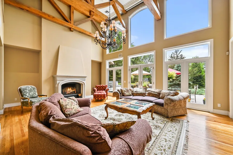 Central Orange County’s finest, a fully custom home boasting long distance views over the distant black dirt region. Privacy abounds set back from a prestigious dead end road, this expansive French manor style home sits high on just under 5 acres of serene woodlands with rock outcrops, open lawns and garden areas. Walls of glass surround you on the first floor including the double-height great room, kitchen and primary suite. The bespoke kitchen speaks to the quality of the home, with attention to detail from a construction industry veteran. This one owner home was commissioned by its owner to meet discerning and exclusive build standards. Radiant heat flooring (first level), high ceilings, millwork, hardwood floors, the home is thoughtfully luxurious. Custom oak beams, unique fireplace surround provide architectural intrigue. The chef style kitchen is remarkable in the quality of appliances, cabinetry and countertops. It opens to the back deck where the home is soaked in southwest exposures for the most magnificent sunsets.