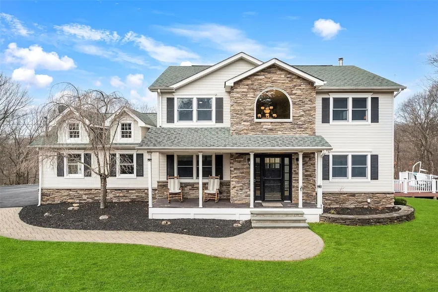 Set on 5 private acres, this beautifully maintained Colonial offers the perfect combination of tranquility and convenience. With 2,276 sq. ft. of living space (not including the finished basement), this home features a pristine kitchen, a cozy living room with a fireplace, and a versatile lower level ready to suit your needs whether as a recreation space, home office, or gym. Designed for both relaxation and entertaining, the expansive Trex deck leads to a heated above-ground pool, perfect for summer gatherings. Thoughtful upgrades include a Generac transfer switch for a portable generator, a UV light water filtration system, a pH neutralizer, and a new water softener (2023). Additional updates include a new well bladder tank and pump (2023), a new pool filter and pump (2024), and Nest smart home features. The AC system was replaced in 2019 for year-round comfort. Enjoy the serenity of country living without sacrificing modern conveniences in this inviting and well-appointed home, just minutes from shopping and Warwick schools.