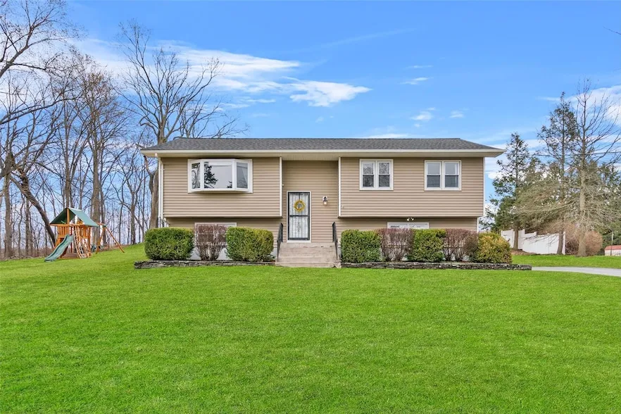 Beautifully maintained 4 bedroom, 1.5 bathrooms bi-level with a 2 car garage on over 1 acre of land. Hardwood floors throughout the upper level. You'll be amazed at the amount of natural light that flows through the home. Warm tone wooden cabinets, granite countertops, glass tile backsplash and stainless steel appliances compliment the kitchen. Sliding glass doors lead to a large screened-in deck with ceiling fans. There's also a blue stone patio surrounded by a low maintenance garden where you can sit and relax with family and friends. Large yard offers plenty of room for pets and small ones to play and run around. Bathrooms have also been upgraded. Lower level offers a family room and the fourth bedroom/office, ideal for anyone that works from home. Located in the Goshen School District. Roof is less than 1 year old. Ideal commuter location, minutes to I86 and a short drive to LegoLand. 10 minutes from Woodbury Commons. 40 minute drive to Resort World Catskills. Ideal location for someone seeking peace and quiet with the convenience of having shops, restaurants and entertainment close by. Call today for your own private viewing.
