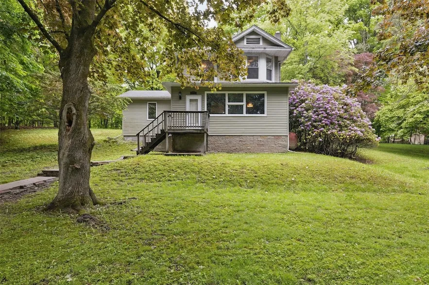 Charming Hidden Gem with Unmatched Natural Beauty & Endless PossibilitiesStep into this enchanting diamond in the rough, perfectly nestled in a tranquil, bucolic setting just off East Avenue and within walking distance of the vibrant Village of Walden. As you approach along your picturesque driveway, you'll be greeted by a spacious detached two-car garage ideal for storage, hobbies, or workshop space. This remarkable property borders James Olley Park, a sprawling 98-acre outdoor oasis featuring a lake, beach for swimming, kayaking, and fishing, along with scenic hiking trails, playgrounds, and picnic areas and disk golf all right outside your door. Inside, you'll find an inviting enclosed porch, the perfect spot to unwind and enjoy crisp fall evenings beneath vibrant foliage. The porch offers two closets, providing convenient extra storage. Step into the heart of the home, where the spacious main living area exudes character, highlighted by original 50s wall sconces and soaring high ceilings that create an open, airy ambiance. A cozy wood-burning fireplace nook adds warmth and charm, setting the scene for memorable winter nights with family and friends. The newer addition serves as a versatile family room, equipped with baseboard electric heat, ensuring comfort year-round. French doors seamlessly connect this space, offering flexibility and flow within the home. The retro metal kitchen, complete with vintage cabinets, is a blank canvas ready for your personal touch to restore its shine and character. Adjacent to the kitchen, a delightful three-season room beckons for relaxation, entertaining, or simply enjoying the peaceful surroundings. A conveniently located half-bath completes this level, making daily routines effortless. The basement features laundry facilities and ample space for major appliances, streamlining everyday living. Upstairs, you'll discover three generously sized bedrooms along with a full bathroom featuring a full tub and shower. Attic access in the hall provides additional storage options, enhancing the home's functionality and organization. This sale includes two separate parcels and is being sold as-is, presenting a rare opportunity for visionaries and investors to transform this charming residence into their dream home. With its prime location, abundant natural beauty, and endless potential, schedule your viewing and start envisioning the possibilities that await.