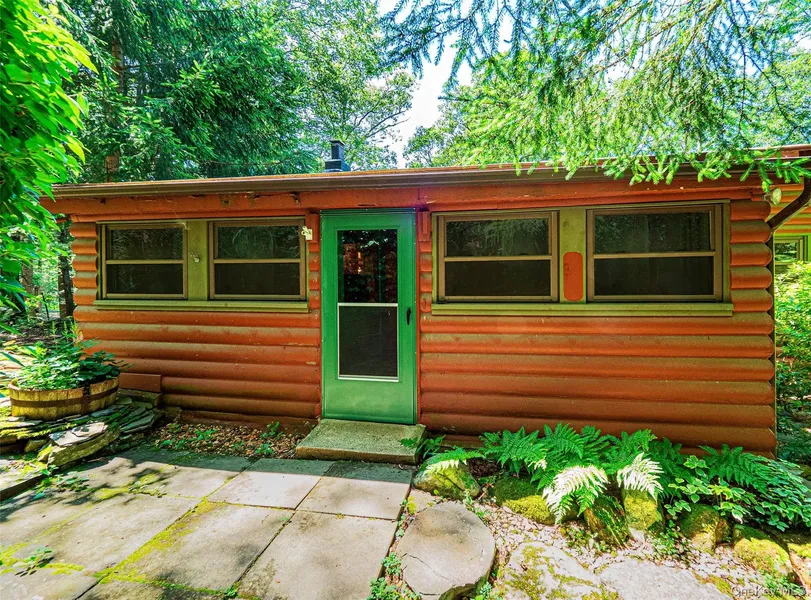 Inside, the spacious living and dining area showcases a striking stone fireplace with a barn beam mantle, ideal for cozy evenings. The kitchen is thoughtfully designed with wood cabinetry, soapstone countertops, backsplash, and an authentic farmhouse sink. Enjoy serene views while dining in the bright eat-in kitchen.