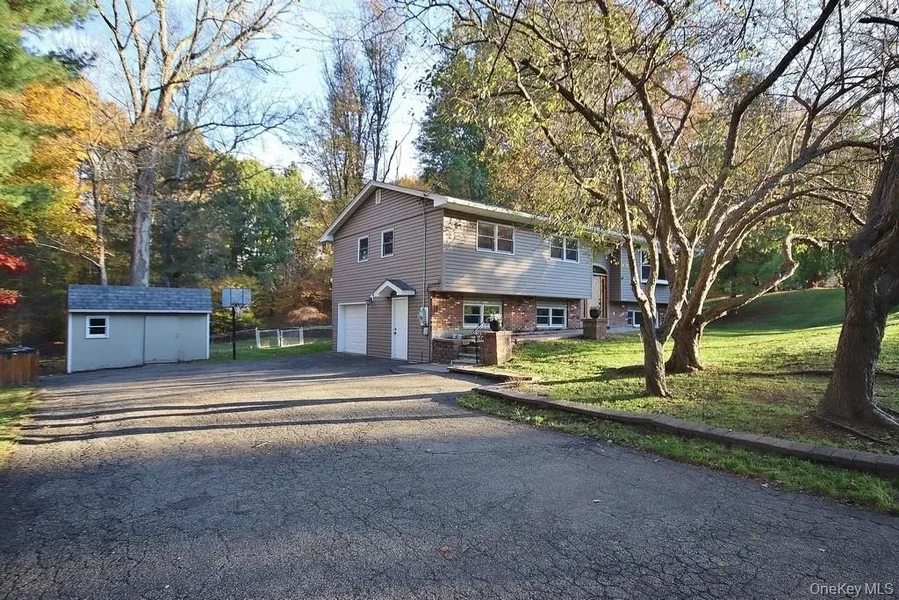 Split-level spacious home in desirable Chester neighborhood within Warwick Valley School District! This home features newer vinyl siding, a custom front entry door, hardwood floors, ceiling fans, and radiant electric ceiling heat. The 2-car garage includes windows and an automatic opener. Enjoy the fully fenced-in yard with an in-ground pool, deck with gazebo, shed, and play set—all included. Spacious layout with attic crawl space for additional storage. Propane hot water tank installed in 2021. Home is being sold AS -IS . Freezer not included. Just a few minutes away to Legoland and desirable Sugarloaf historic area. Lots of breweries and hiking trails nearby as well. 10 minutes to local highway. Great location with privacy and room to make it your own! Dishwasher does not work nor Jacuzzi tub.