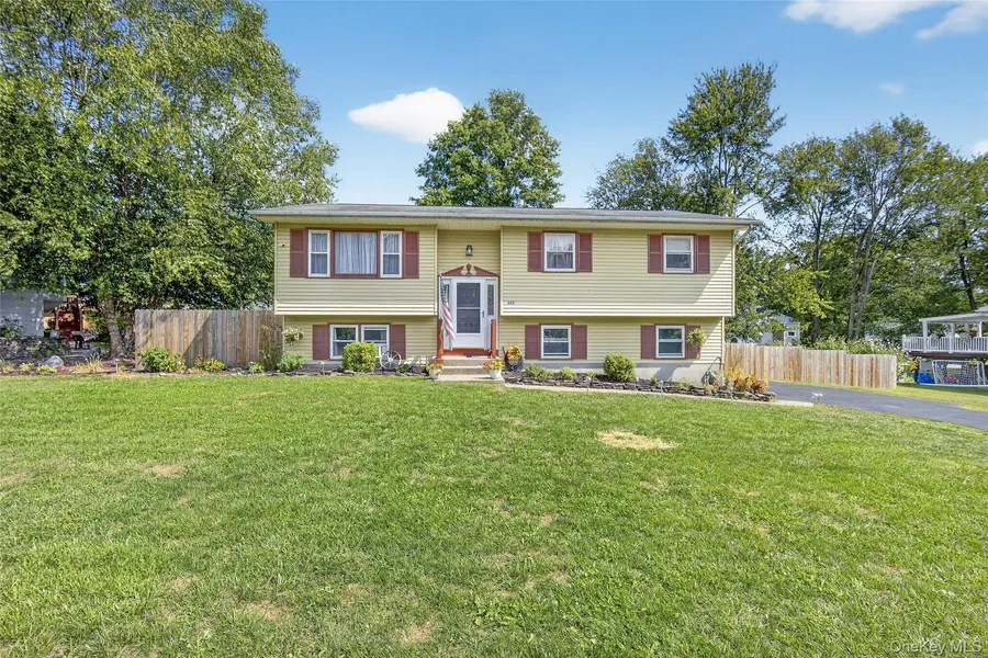 Come join the wonderful world of Sweet Montgomery with village and country life at its best! This lovely home located in a desirable tree lined neighborhood has space for everyone to relax and enjoy the lifestyle of a charming town with quaint main street, wonderful shops, museum, restaurants, beautiful village park with fun for all ages (playground, pickleball, basketball & more!) and of course all the fun festivities that Montgomery offers through out the year.. From Montgomery day to annual yard sale day, summer concerts, St Patrick's ramble fun and more.... This 3 bedroom 1.5 bath freshly painted bi level offers hardwood floors, kitchen with stainless steel appliances (newer stove & microwave 2023), vinyl flooring & creative dark blue cabinetry. The open living room and dining area is spacious and perfect for family time and gatherings. Sliding glass doors conveniently lead to a wonderful deck for outdoor dining, relaxing or morning coffee . Another special feature is the inviting oversized yard at .32 of an acre which is fully fenced in ( w/beautiful wood fencing) for privacy and safety for children & pets, and offers seasonal pool that is easy to put up yearly. Continue to the lower level to find all the bonus spaces which provide even more potential with family room, den and large laundry utility room with washer dryer (2020), well cared for boiler (2012) , HW Heater (2023) and exit /access door to driveway. Additional improvements include freshly re-sealed driveway that accommodates 3 cars and brand new garage door. If you are looking for a sweet neighborhood, a walkable lifestyle to the village fun, 15 minutes to major shopping stores and mall, wineries, Angry Orchard brewery and easy commuter routes.. this home could be just what you have been searching for!