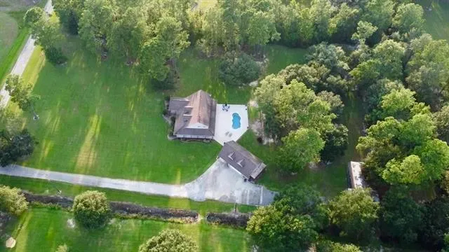 STOP & take a LOOK at this one! Charming country home of 2600ft with a beautiful 2 story stone wood burning fireplace, living room skylights, & a convenient half bath. Large master suite includes large walk in closet, soaking tub & separate shower. In the kitchen you will find a granite island with seating, breakfast bar area adjacent to dining area. Up the rustic pine staircase sits 2 nice size bedrooms, bathroom and a 2nd living area with built-ins that overlooks downstairs. Oversized laundry room opens to back patio of approx 700sf of wrap around porch. So much to offer on this 3.2ac property that includes a 500sf garage apartment, saltwater pool and covered parking with workshop. LCM school district. This property has no known flooding. Call today to schedule your showing!
