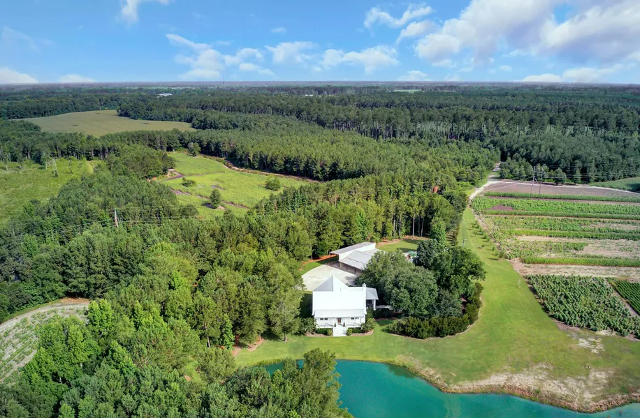 Located among expansive cotton and cornfields, this rare Lowcountry estate offers a tranquil rural getaway while only being 45 minutes from Charleston. Clay Hill Farm is a 92-acre nature enthusiast or outdoorsman's paradise. The property includes a main residence, barn with living quarters, stocked pond with controlled water level, dove fields, and a waterfowl impoundment. Escape from the chaotic city to your own private country estate, conveniently located 1 mile from I-95, 3 miles from I-26, 4 minutes to Lake Marion, and 45 minutes to Columbia. Enter the property through ivy-covered columns, down the private drive, and to the parking area with enough space for as many guests as you'd like. The main residence is a custom home built in 2018 full of classic Southern charm.