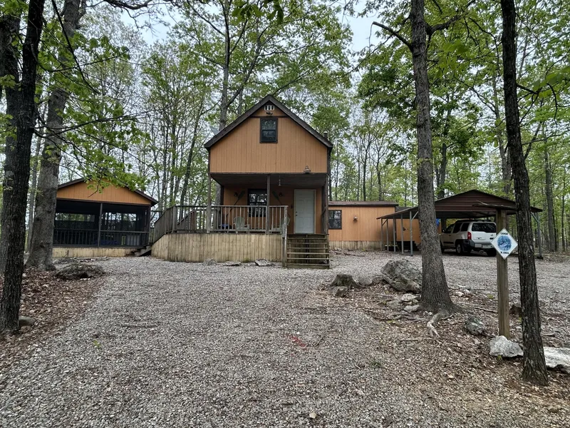 Escape to your own secluded haven with this cozy 2-bedroom, 1.5-bath all-electric home nestled on 9.65+/- unrestricted wooded acres. Surrounded by nature and just minutes from the crystal-clear waters of the Eleven Point River and the endless trails of Mark Twain National Forest, this property is a dream for outdoor enthusiasts. Inside, you'll find warm hardwood floors, a vaulted ceiling with exposed beams, and a cozy wood-burning stove for those chilly nights. The spacious screened-in porch--with a relaxing hot tub--invites you to soak in the peace and quiet. A storage building offers extra space for gear or tools. Whether you're fishing, floating, hiking, or simply enjoying the sounds of the forest, this private retreat offers the perfect blend of comfort and adventure.