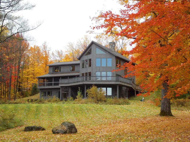 This exquisite 4,700-square-foot Post & Beam home is nestled on 14 acres at the base of Jay Peak. The setting provides lovely mountain views, open & wooded areas, & 3 private ponds. This modern home features an open concept kitchen, dining & living area with a beautiful oversized stone fireplace, soaring ceiling & walls of windows giving unobstructed views of the ponds and mountains beyond. The main floor also has a large mudroom with room for all your gear and a bedroom and a bath with a walk in tile shower. The top floor boasts 3 bedrooms, including a lovely 23x29 master suite with custom 5-piece bath featuring a tiled shower, jetted tub & bidet. The daylight walkout basement is great for entertaining, exercising, relaxing or sleeping with a wet room including a cedar sauna, tiled rainfall shower, and separate half bath, large office and/or workout / bunk space, and 20x33 family room w...