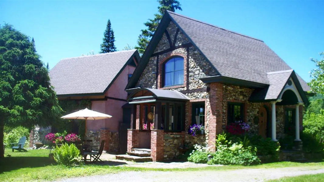 One-of-a-kind turnkey homestead on 158 acres along the USA/Canadian border consisting of 2 distinct custom-built Scottish-style cottages, "Emerley" & "Bagatelle", joined together by a covered & enclosed wood-clad passage, as featured in VT Homes & Gardens magazine. Both built using locally salvaged barn beams, silo planks for flooring & repurposed hardware, doors & fixtures. The exterior & larger of the two, Emerley, is brick & all-stone gathered from the horse pasture & river down the road. Open living with large & bright bathroom w/see-thru gas fireplace, Jacuzzi soaking tub & shower & a spacious bedroom upstairs. Bagatelle's stone & stucco exterior complements the unique personality of this home. Inside is a modified kitchen/living area, European-style bathroom & gracious loft bedroom. Wonderful flat-stone patio & brick walkways lead you to beautiful landscaped surroundings, swimming ...
