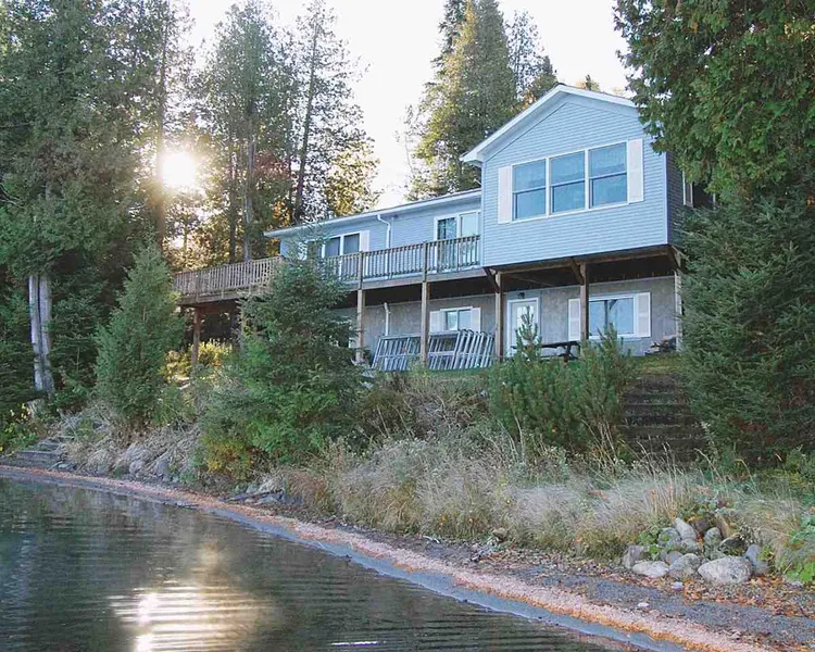 Beautiful lakefront home with a gorgeous setting offering over 300' of frontage on Seymour Lake. Extremely private, the lot is beautifully done and offers a brook with a walking bridge leading from the house to a gazebo. Quality construction, beautiful wood floors. Huge living room with wood insert fireplace, formal dining room with sliders leading to deck overlooking lake. This is an ideal home for year-round or summer family activities. This home is priced well-below town assessed value. A must see on what is considered Vermont's cleanest lake.