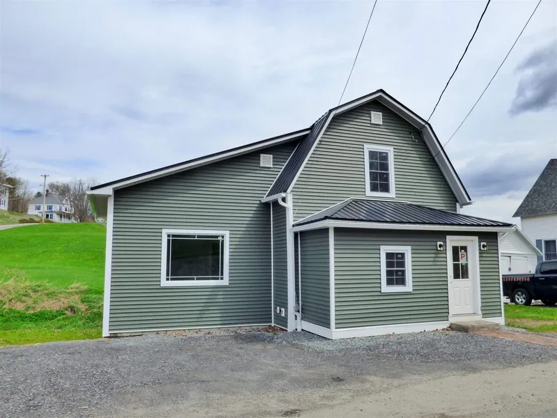 This attractive Gambrel village home has been completely renovated from top to bottom. The bright & spacious eat-in kitchen has white cabinets with a 5' island and exits onto a covered porch - the perfect spot for your morning coffee, seasonal dining & relaxing! The living room features maple flooring, 10' ceilings and a large picture window. A completely new full bath, along with tiled mudroom, complete the first floor. A beautiful birch stairway leads to two bedrooms, each with a good-sized closet. The walkout basement is partially finished with laminate flooring and can be used as a 3rd bedroom or additional living space. There are washer/dryer hookups & room for storage in the unfinished area. New furnace, electrical panel, metal roof, vinyl siding, windows, sheetrock walls, flooring, doors & fixtures make this an efficient and low-maintenance home. Easy access to I-91 yet tucked awa...