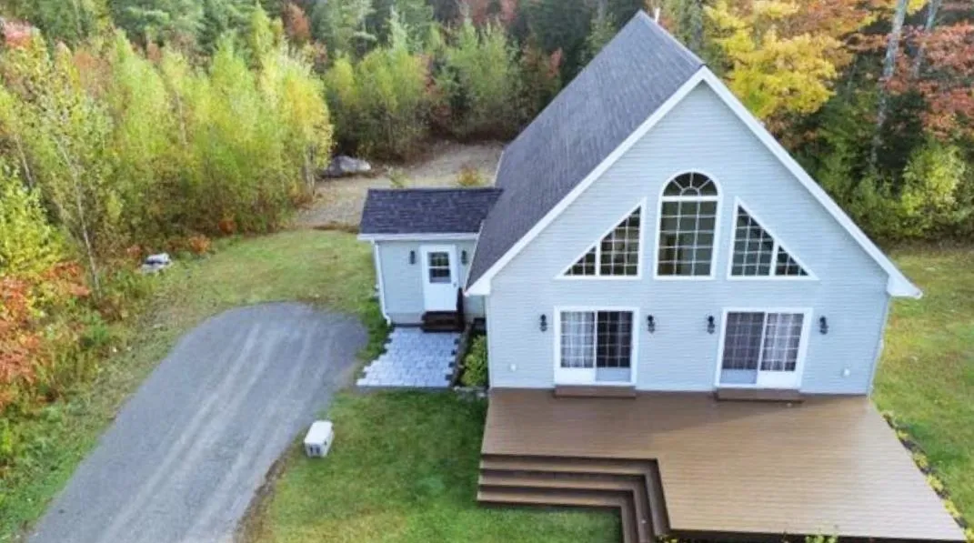 Beautifully kept Chalet-styled Cape on 3.5 acres located on private road with few neighbors. Open concept kitchen/dining area, living room with cathedral ceiling and primary bedroom loft with full bath and jet tub. This home has radiant floor heat in main floor, loft area, basement floor and an on demand hot water tank. The walkout basement has an additional room of choice and an area ready for finishing to entertain friends and family. All appliances and some furnishings are included. If not for yourself, this would be a great investment as rentals are in high demand. Just an 8-minute ride up to Jay Peak Ski Resort, Indoor Water Park and Golf Course.