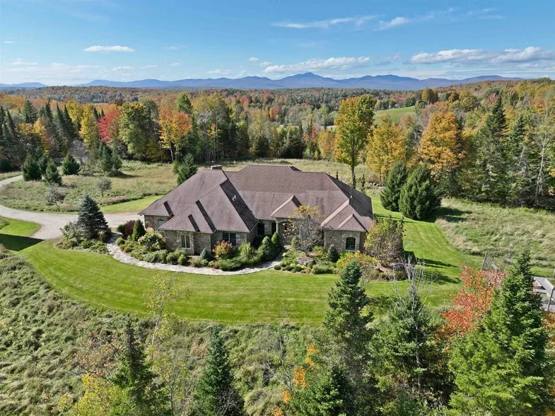 Set on 160+ acres with gorgeous views of Jay Peak and the surrounding mountains, this extraordinary 4,000+ sq. ft. contemporary estate offers privacy, sophistication, and sustainable living in Vermont s Northeast Kingdom. The striking natural stone exterior sets the tone for the elegance inside, where Australian cypress and slate floors, 10 ceilings, and crystal chandeliers create timeless refinement. The gourmet kitchen is a chef s dream with full-size Miele refrigerator and freezer, double wall ovens, and induction cooktop. Relax in the family room beside the wood-burning stone fireplace or enjoy year-round light in the sunroom with its floor-to-ceiling windows. The primary suite is a retreat of its own, featuring Brazilian cherry floors, spa-like marble bath, home office, and expansive walk-in closet. Guests enjoy a private wing with two bedrooms and Jack & Jill bath. Modern comforts...