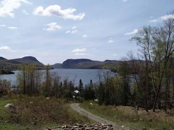 The property's primary feature is its prominent, long view down the lake, which includes the twin peaks of Mount Pisgah and Mount Hor. The elevation at the building site is 1,300', giving way to a view that is largely unobstructed from buildings. The land has a southern aspect, providing ideal solar heating of the land and its buildings. The building site is a few minutes' walk from the lake's public beach along Route 15. Behind the building site, the land is gently sloping and rises to an elevation of 1,520'. The Vast trail creates a nice hiking trail into the land during spring, summer and fall. A small stream cuts through the eastern end of the land.