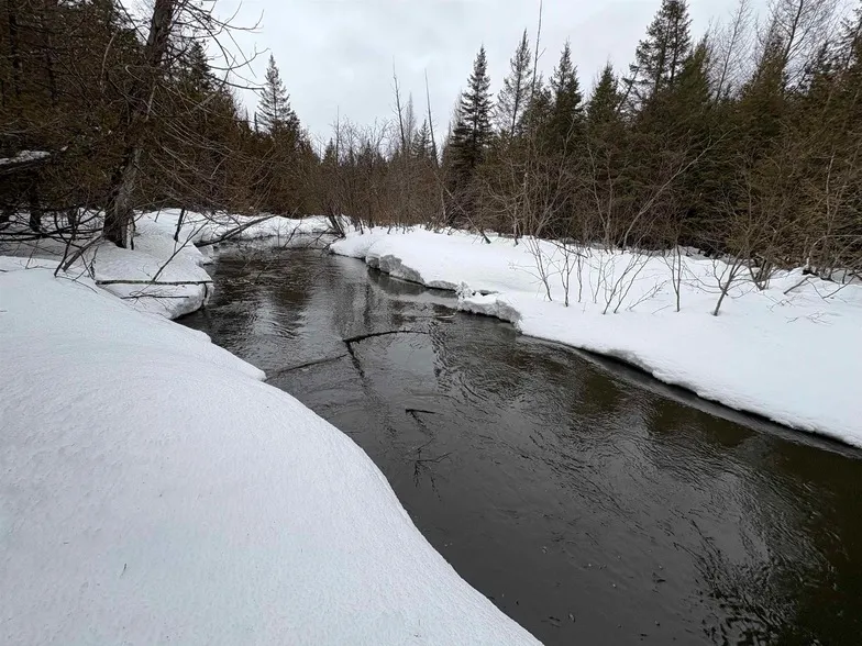 Welcome to Greensboro Brook Forest. 23+ acres of lush natural habitat. Approximately 18 acres of which is dedicated to thick established growth of Eastern White Cedar. Of the remaining acreage approximately 4 acres on the northern edge would appear to lend itself most to development. The property is bounded entirely along one side by the graceful Greensboro Brook. Frontage on a paved, town maintained road allows for easy access. Overhead power and communications lines run along the road. The seller will remove all personal property including: mobile home, RV and vehicles prior to closing. Mobile home is occupied, please steer clear when walking the land so as not to disturb the owner and pets.