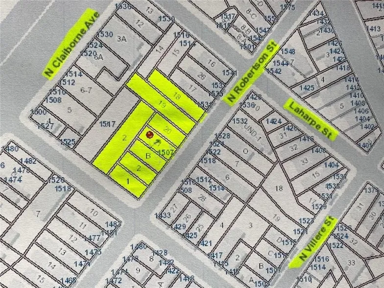 A rare vacant land offering of 7 lots in an OPPORTUNITY ZONE, subdivided into multifamily parcels. Property consists of 1503-1527 N Robertson (1503, 1507, 1511, 1515,1519, 1523, and 1527 N Robertson.) This site is located mile to the French Quarter and Marigny. HMR-3 zoning intended to provide single-family, two-family, and multifamily dwellings of 3 to 4 units. Please note- this site is fenced and currently has an additional lot within the lot, that is not included in this parcel. Approx lot sizes.