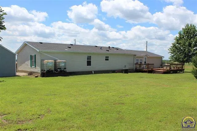 Country living on pavement with a Melvern lake view. This home has 3 bedrooms, 2 baths, an additional craft room with large walk-in closets and sits on 8.8 acres. The acreage is currently in native grass and being hayed for this season. There are 2 small ponds. There is a detached 2 car garage and one car attached garage with a storm shelter in it, and there is a fantastic hilltop view! There is a garden space and grape vines established.
