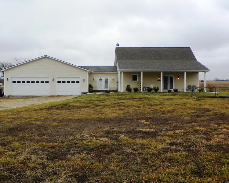 Newer Country Home on over 10 acres! 4 BR, 2BA, Acid stained concrete floors with radiant heat (keeps home toasty) Plus central heat and air. Two bedrooms, one bath up, two bedrooms, one bath and utility room on main. Spacious Family Room on Main Level. Plus very large 3 car garage built with high tresses. Home bigger on inside than it appears!! Property has a small pond. County says 1850 sq ft - seems like more. Call your lender - then schedule your appointment. Taxes, sq ftg, meas. m/l.
