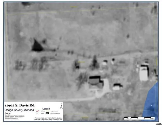 Here is your Country Getaway! Cute Bungalow. Huge master bedroom,main floor laundry, country kitchen, fireplace. Large deck/porch on back of home. 4.7 acres with pond, fenced area for horses or other livestock, 36x24 oversized garage/shop with concrete floor with attached lean-to. Call your agent today and set up your showing! Sold "As Is" Less than 2 miles of gravel road. Only 22 miles to shopping on Wanamaker Rd. in Topeka. Measurements, Sq Ftg, Acreage, Taxes are approx. and m/l.