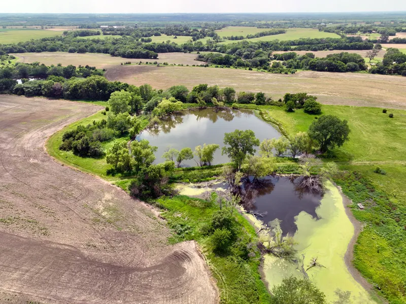 Build your dream home on this 64 m/l acre build site with a 48'x100' shop. The shop has a 6 inch concrete floor and two 16'x16' doors. There is plenty of room for big equipment or to store that RV. Utilities and rural water are on site. Enjoy the treed areas with multiple ponds to catch fish. Great hunting opportunities await with thick cover for deer and plenty of food for wildlife with 26 m/l tillable acres currently planted to soybeans. There is also lots of space for a large garden or playground equipment. About 25 minutes from Topeka.