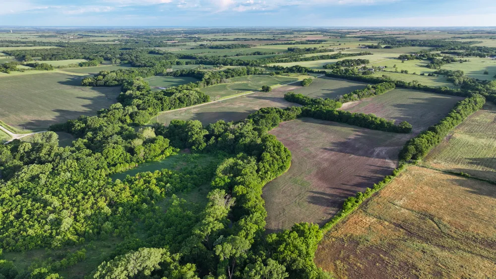 This 73 +/- acre property is located just west of Osage City, Kansas. It has a great balance of creek-bottom tillable fields, a large year-round active creek, and hardwood draws for hunting! The 54 +/- tillable acres primarily consist of highly productive Class II and III silt loam soils with an average NCCPI overall rating of 72. The tillable acres are subject to a year-to-year tenant farm lease agreement and are currently cash-rented at $115/acre. The remaining 19 +/- acres have a diverse native habitat that many whitetail deer, turkey, and quail call home. Salt Creek winds throughout the south side of the property and is lined with giant mature hardwood timber. The timber on the property includes a great mix of cedar, oak, sycamore, and cottonwood trees.