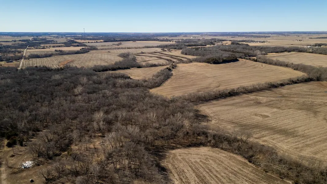 This property offers exceptional sporting grounds combined with row-crop income. The 235-acre tract includes approx. 145 acres of tillable land and 90 acres of dense timber, waterways, plus Hundred-and-Ten-Mile Creek flowing year-round. The property features a large population of whitetail deer, turkeys, & a resurgence of quail, providing excellent recreational opportunities. Well-defined deer trails& bedding areas are abundant. Deer pictures are few due to minimal hunting activity. The land was in the CRP program from about 1998to 2017. Notable features consist of various elevation changes, picturesque views, rugged wooded terrain, and over 3,000 feet of creek bed for outdoor enthusiasts. Conveniently located 12 miles south of Topeka &only a few miles from Hwy 75 and Hwy 56. With roads on two sides, this parcel has nearly 1,600 feet of road frontage plus a minimum maintenance road on the south. Moreover, there is significant potential for development & future growth. There are 14-18 available water meters for this parcel, and electricity access, making it an attractive option for development or investment. Save thousands utilizing the ten-year tax abatement program for new construction. Whether seeking farmland, a private hunting oasis, or a site to build, this property offers diverse possibilities for enjoyment& investment. The row crop tenant is confirmed for the 2025 growing season. Most of the tillable soil consists of Kenoma Silt & Summit Silty Clay Loam.