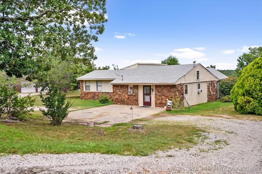 Let your imagination run wild with this one! Airbnb, lake cottage, or permanent residence! Ride your side by side to CrossTimbers Marina or Tall Chief Store or Tall Chief Campground and swim beach on Skiatook Lake! This secluded home on 5 acres (m/l) has newer roof, fresh exterior paint vinyl windows, open floor plan with 2 bedrooms and 2 bath. Kitchen has island an pantry and, opens to formal dining and living. Electric fireplace in living provides cozy warmth in winter, spacious primary bedroom has walk-in closet and hallway access to full bathroom. 2nd bedroom private bath with shower only. Huge storage room includes utility room. Large enclosed patio/deck has beautiful view of Osage Hills and has door out to extended exterior deck. 35x50 shop has concrete floors, electric and attic for all of your lake toys Selling AS IS - Seller makes no repairs.