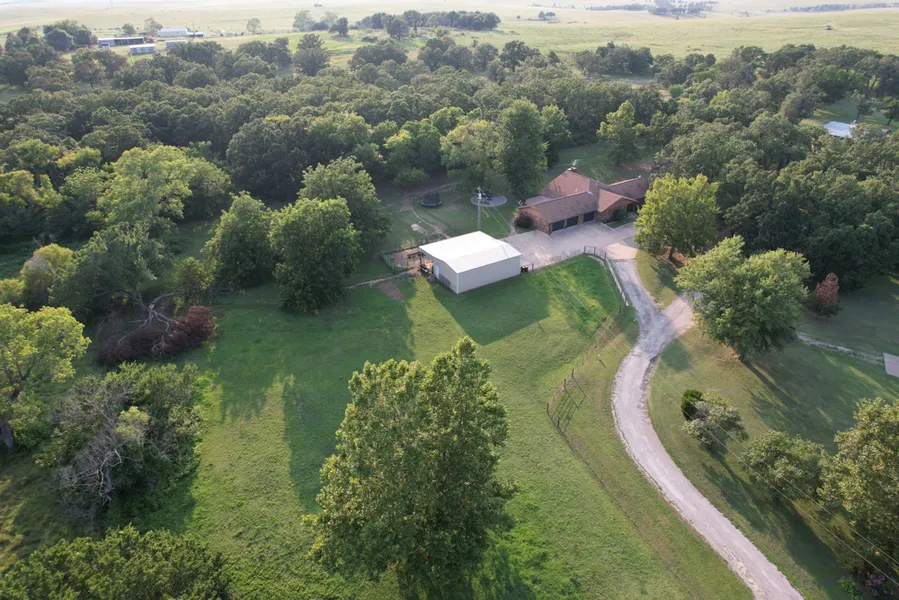 Midwest Land Group is proud to present this home on acreage near Pawhuska with much to offer. As you take the short drive west of Pawhuska along Highway 60 you will enjoy the scenic drive across the prairie as you come to County Road 4297. Turning north on 4297 you will take the fork in the road to the left and be greeted by the charming and spacious 2,400 square foot sandstone home with a three-car garage. Walking through the front door the space of this home is immediately apparent with a large dining room off to your left that wraps around into the newly remodeled kitchen. The living area is a sight to see with plenty of space and a cozy wood-burning fireplace equipped with a blower to provide extra heat in the winter months. Just off the living area is a connecting door that leads to the sunroom with a sliding door out to the covered outdoor living area. Hardwood floors can be found throughout with carpet only in the three bedrooms. The master bath has a soaking tub with a shower adjacent and large walk-in closets just off the bathroom to the east and west. As you make your way outside there are several outbuildings that appeal to many. There is a multi-bay shed for equipment storage, dog kennels, and a 30'x45' insulated shop with a lean-to. Small acreage such as this with all it has to offer is a rarity in Pawhuska. If interested, call (918) 578-9353 to schedule a private showing.