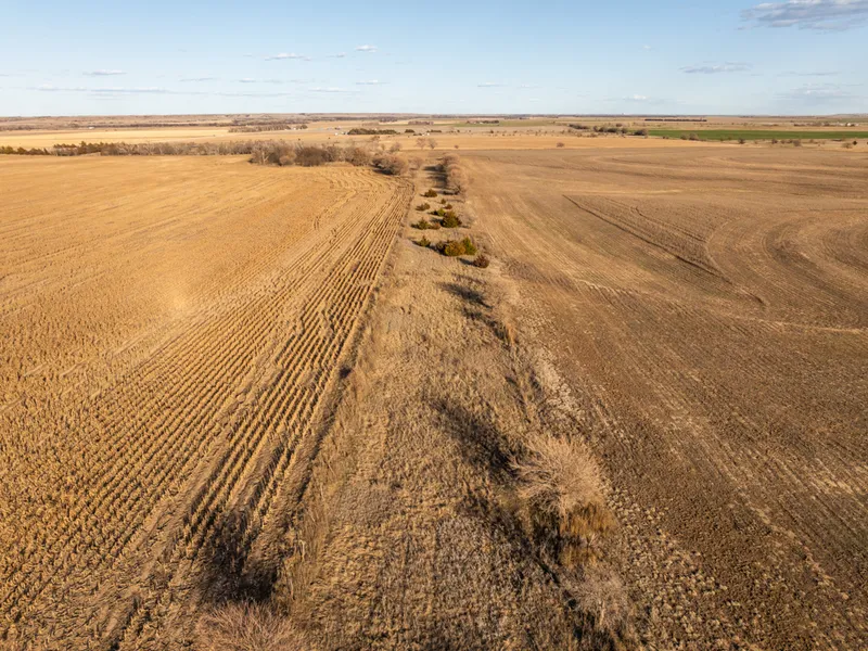 Here's an excellent opportunity to add a diverse investment to your portfolio or farming operation in northern Osborne County. This property is located just two miles south of Portis, Kansas, and two miles west of HWY 9. It sits on the fringe of Joy Creek with all-season road frontage along two sides. The 235 +/- acres have 116 +/- acres of quality Class II and III soils. There is a cash rent agreement in place with a reputable tenant through the year 2025. There are 30.6 +/- acres of expired CRP that can either be reenrolled, broken out, utilized for cattle, or a source of excellent upland bird hunting. There are 80 +/- acres of grassland with scattered cover and rolling hills with two ponds still holding water. The remaining acreage is comprised of a timbered creek bottom and an old home site. An additional source of income will be available to the new owner with a newly-inked Grain Be...