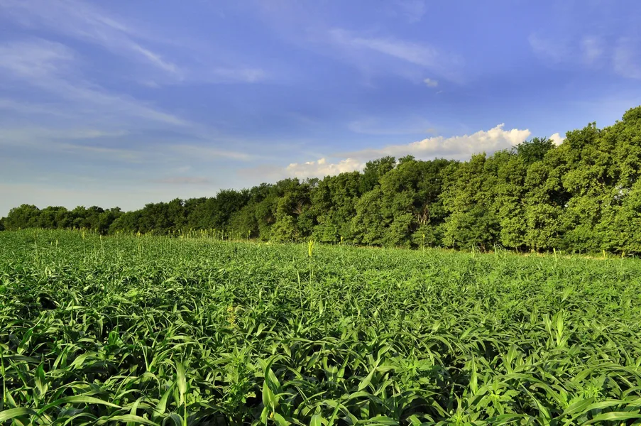 - - Area on east side of cropland features tall mature cottonwoods and 10 ft tall grass which serves as an incredible bedding area for deer