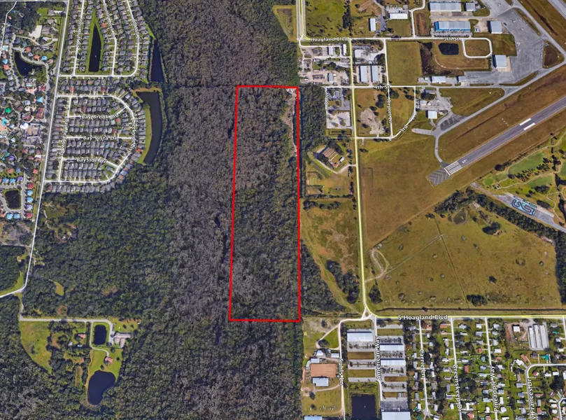 Vacant Industrial Land with extensive frontage on the South Hoagland Blvd. road extension and expansion. Two minutes to the Kissimmee Gateway Airport. Approximately 260 front feet on Shingle Creek (headwaters of the Everglades). Seller estimates 17 acres of usable land for construction.