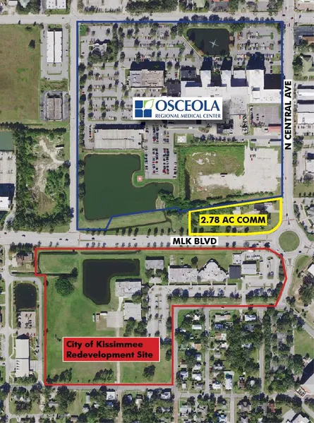 Prime property, part of the City of Kissimmees Medical Arts District. Located next to Osceola Regional Medical Center. Property offers a great location for an unlimited commercial use to include retail, medical office, apartments, etc.