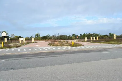 and all utilities appear to be in place. There is a brick wall that runs along the western border. The entrance
