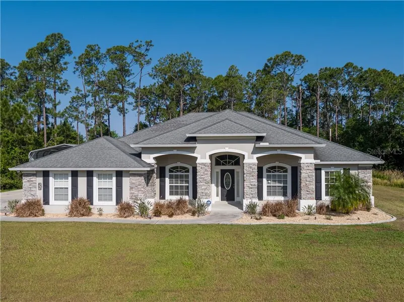 Beautiful custom lake access home ON BAY LAKE in the sought after neighborhood of Bay Lake Ranches! Well manicured and landscaped 2.64 acres of sprawling land. Relax and enjoy country living at it's finest with all of the upgrades. Custom hardwood floors with granite inlay, architectural columns, and stone beautifully designed to welcome you home in the grand entryway. Large bonus/media room with surround sound and double doors invites endless opportunity for entertaining and hosting. Bright and spacious dining room with custom tray ceilings flows directly into the kitchen for serving and entertaining ease. Large gourmet kitchen offers custom cabinets, upgraded edged granite counter tops, and all stainless steel appliances. Walk in pantry, tons of cabinets, and large counter space make this kitchen a chef's dream. The welcoming sunlit living room features vaulted ceilings and double sliding glass doors with views to the backyard and the wildlife that frequently roam. Large double sliding glass doors open up to your breezy screened in patio with room for entertaining guests and enjoying the country sunsets. This home offers a master suite equipped with his and hers walk in closets, double vanities, walk in shower, and large garden tub. Two additional guest bedrooms and guest bathroom, with patio entry, allow plenty of room and comfort for family or guests. In home laundry room equipped with washer and dryer located directly off of the kitchen for ease. Large two car garage and work shop with custom epoxy floors for all of your tool, vehicle, or "toy" storage needs. There is NO HOA in this family friendly neighborhood. This location cant be beat as the home is located in a top neighborhood close to schools and highway access. Schedule your tour today!