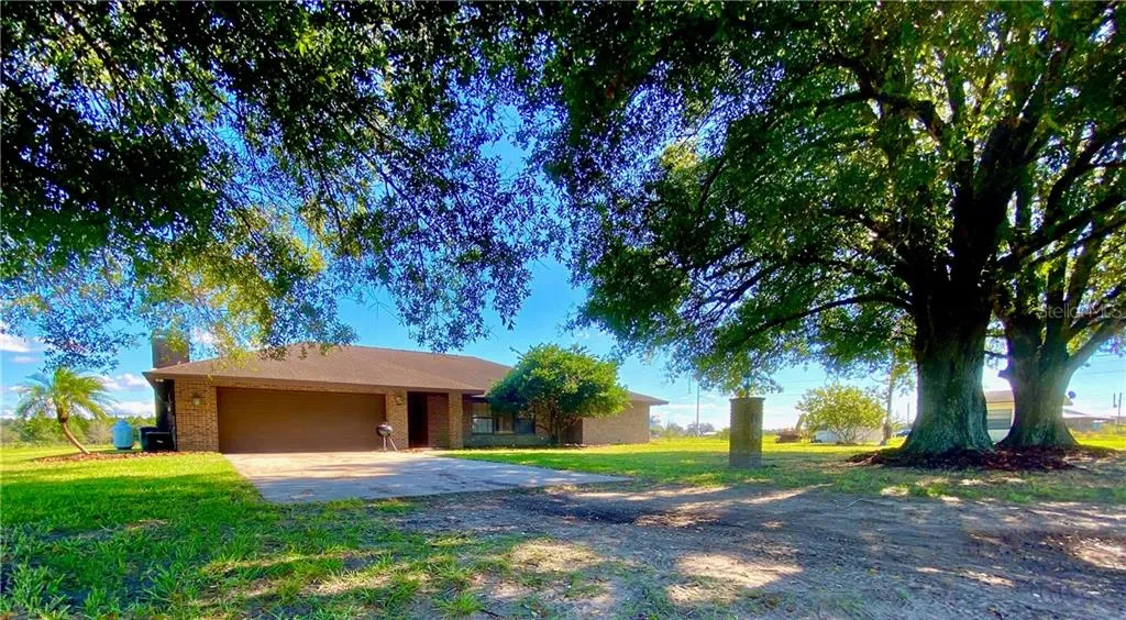 Cozy 4 bedrooms, 3.5 bathrooms brick home with over 3600 s.f. of living area that includes detached 1/1 apartment suite all on 5 acres of Orange Groves. Wood burning fireplace in living room and open floor plan which is great for entertaining family and friends. Kitchen features lots of windows with panoramic view of the countryside, breakfast bar, cook top island, stainless steel appliances, stone counter tops and lots of cabinets. Master suite offers soaking tub, walk in shower, separate vanities and large walk-in closets. Custom barn doors thought and custom sliding barn doors for master bedroom. Back 2 acres are fenced and ready for your animals. Stocked pond with fresh water. This home is only a few miles away from town and just a short distance to Lake Nona, turnpike, 417 and the beaches! DON'T MISS THIS OPPORTUNITY AND SCHEDULE A SHOWING TODAY!
