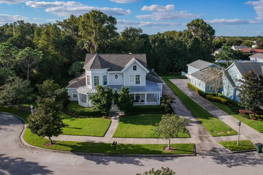ISSA custom-built Springfield Victorian located in Artisan Park on a private corner oversized conservation Lot. New roof and solar energy panels in 2019. Upgrades galore including porcelain tile floors, height ceilings, an expanded master bedroom/sitting area & a luxury kitchen with a gas cooker. This home has so many features including a covered front porch, porcelain tile, ceramic & carpet floors all replaced in 2018, including the staircase being resurfaced with wood. New interior paint in 2018, crown molding, chair rails, formal living & dining, French doors, new light fixtures. Eat-in kitchen with breakfast bar & cabinets have crown molding as well, inside laundry, the master suite is downstairs with huge walk-in closets, garden tub, separate shower & double vanity. The floor plan has been widened and lengthened to provide more living space including 8' doors throughout. In 2020 the bonus room was transformed into a full garage apartment with a new kitchen, laundry, living room & bedroom that is a source of extra income or an extremely comfortable guest house. Upgrades include GE Monogram stainless appliances with a 36" gas top cooker. The kitchen has decorative features like corbels, moldings, custom backsplash and custom hearth hood. Ubatuba granite tops with bump-outs using maple cabinets in millstone color throughout the kitchen. Marble tops in the master bath with upgraded cabinets, tile and faucets. 3-car garage. Custom pool & spa screened enclosure, Aqua Logic controlled.