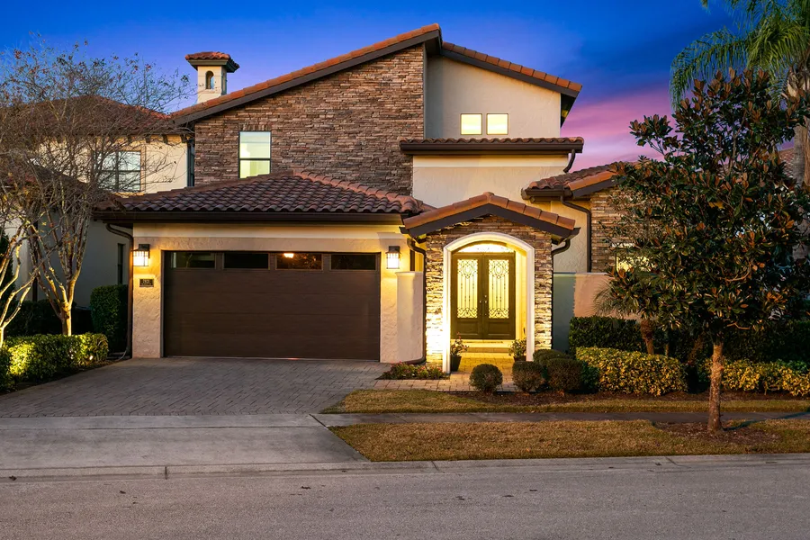 Now available your perfect Florida retreat. One-story luxury Florida home with a dedicated office and additional flex room in one of Reunion Resort's most exclusive neighborhoods. This unique, stylish custom-home offers a spacious yet extremely private living spread over a 4,500-square-foot ground-floor with views of the Jack Nicklaus signature golf course and is offered fully furnished with elegant, transitional-style dcor. The impressive double-entry, wrought-iron front doors swing open to reveal a glorious wide hallway of travertine and wood inlay that glides you effortlessly around the two-story, light-filled foyer and under bright domed ceilings through the entire length of the home. Passing by the private office and elegant formal dining room, you enter upon a magnificent great room that begins with a well-planned kitchen with built-in Thermador appliances, exotic granite countertops and backsplash and a large central island. This continues into a living area specifically designed for gracious entertaining and everyday luxury living with an intimate sitting area on one side and a built-in bar and billiards room on the other. Roll back the floor-to-ceiling sliding door, and the room spills out around the pool and spa, complete with an outdoor kitchen, dining area and separate comfortable lounging area with fireplace. Both the outdoor dining and living areas are covered and have electronic drop-down screens to provide a cool break from the sun-filled Florida days or to fully enjoy the balmy evenings outdoors. The large master suite with a private sitting area, dual walk-in closets and spa-like master bath provides a restorative retreat that opens into a private screened-in zen courtyard with a fountain. There are two additional bedrooms with full baths, all on the first floor, along with a second-floor flex room ideal for an in-law suite, theater room, fourth bedroom or second office; you decide what works best. Located in a club setting with an active membership providing access to three signature golf courses designed by Arnold Palmer, Tom Watson and Jack Nicklaus, tennis and pickleball, an on-site water park, multiple pools and on-site restaurants. Call today and let us walk you, virtually or in person, through this very special residence.