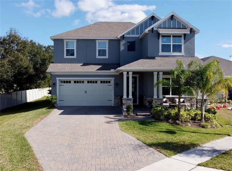 Everything you want and more! This home is better than new! Corner lot home with farm-view backyard. Designed to perfection. Enter through foyer and youre met with double glass doors featuring a beautiful home office with chair and crown molding. Continue walking through foyer and wow! Huge open-concept living space! Crown molding and natural driftwood porcelain tile throughout entire first floor. No carpet! This great room is designed with a feature wall equipped with build-in cabinets, quartz countertops, solid oak shelves and electric fireplace. 75 inch tv is recessed into fireplace wall and boast a 150lb solid oak mantle, perfect for styling for any holiday. The kitchen is packed with upgrades. It features pot filler, matte hardware, carrera backsplash, double wall oven unit (convection and traditional), under cabinet lighting, farmhouse stainless steel sink, stainless steel hood and huge island that seats 4-6. All stainless steel appliances stay! Giant pantry right off kitchen. This kitchen is a must see. Upstairs has a large loft with tile flooring and 4 bedrooms with 2 master suites! Lastly, this home is ready for outdoor entertaining! Through 3 sliding glass doors, step out into your paradise. Outdoors boasts1,100 sq. ft of pavers, in-ground pool built in 2020 with sun ledge and outdoor kitchen! Outdoor kitchen includes island seating for four, 4 burner grill with rotisserie feature, refrigerator and side burner. You dont want to miss this! Welcome home.