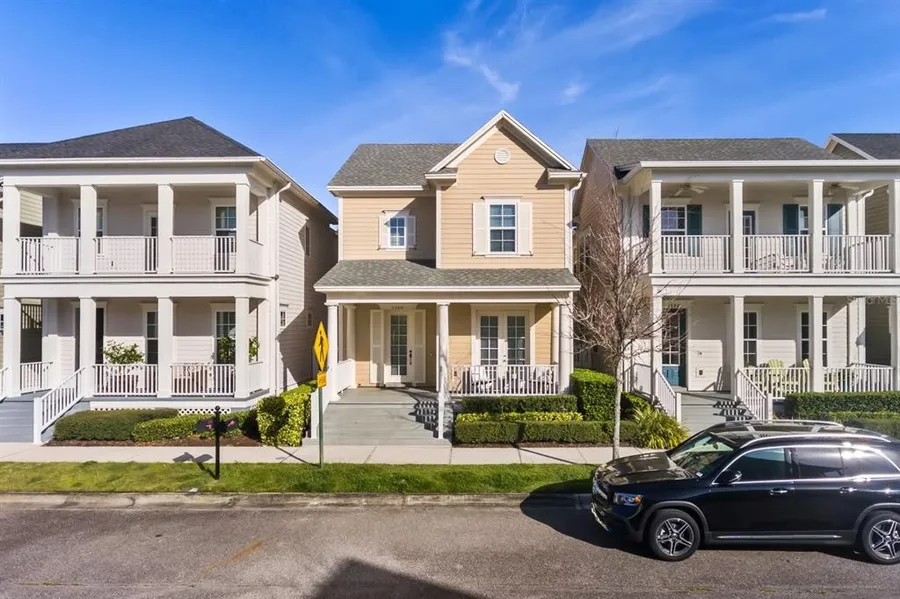 Welcome to the elegant David Weekly 3 bedroom, 2.5 bath house, where pride of ownership shows. Enjoy your afternoons on the the front porch of this beautiful David Weekly Odair home. A great and cozy floor plan, this house has many upgrades! A formal dining area, a spacious family room with the open kitchen and breakfast nook. Amazing Kitchen with lots of space to entertain your guests, with a large center island, granite countertops, stainless steel appliances, Range and tons of storage in the wood cabinetry! A spacious laundry, two bathrooms and three bedrooms, including the owner's suite, upstairs. The downstairs features Engineered wood flooring throughout and a convenient powder room. In the Master bedroom, lots of natural light, walk in closet and a Large Master Bathroom. The breakfast nook leads you to the paved patio where you can enjoy a cookout and entertaining guests. Attached garage for 2 cars. Come see this beautiful home in Spring Lake Community has its own pool and fitness center. Celebration has several parks and playgrounds throughout and many open green spaces for the family to enjoy. Located just 30 minutes from the Orlando International Airport, and within a short drive to all the theme parks and fine dining. Owner is willing to sell furniture separately . A must see that will not last long.