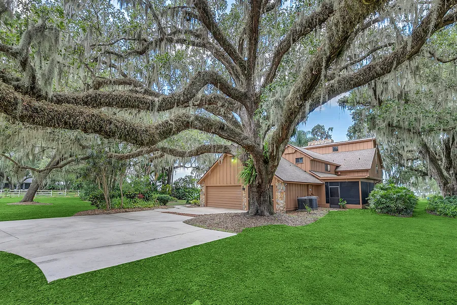 Beautiful lakefront estate. This custom home sits on 2.80 acres. 210 feet of Lake Tohopekaliga frontage. Lake Tohopekaliga is part of the Kissimmee Chain of Lakes. The home is nestled under great father oaks. Over 2,942 square feet of living area. Four bedrooms, two-and-a-half baths. Great room with fantastic views of the lake with grand stone fireplace with floor-to-ceiling stone. Large eat-in kitchen with plenty of custom cabinets and center island. Cozy family room with built-in cabinets and attached screened patio. First-floor master bedroom overlooking the lake with en suite and large walk-in closet. At the top of the spiral staircase, you will find three large bedrooms with two featuring lake views and balconies. Has bonus of a saferoom on the second floor. Home has an oversized three-car garage. Property also includes a 32-by-60-foot metal garage with plenty of room for your works...