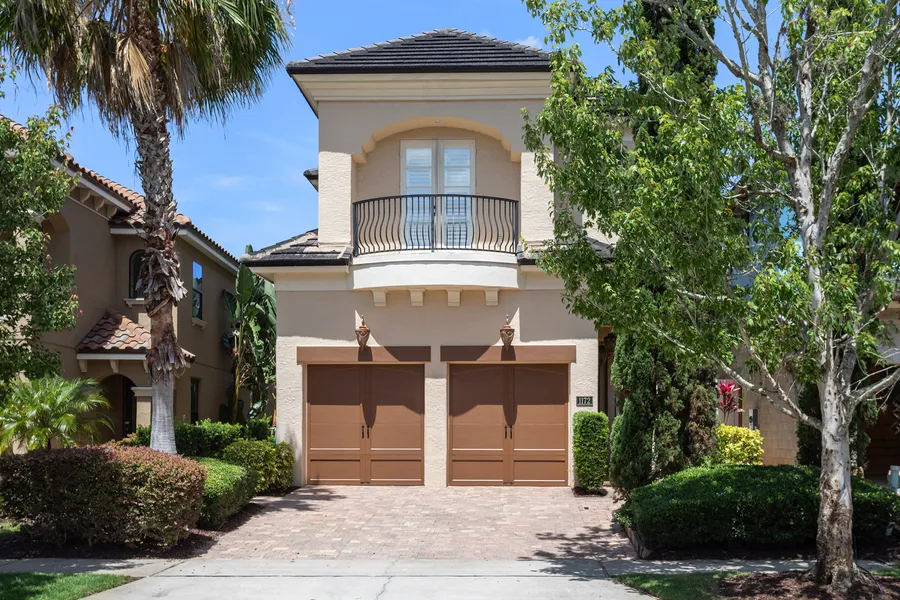 Stunning custom Reunion Resort residence originally built as a model home by Hannigan Homes (one of Reunion's most trusted featured builders) loaded with details and upgrades that truly set it apart from the crowd. A lovely entry rotunda welcomes you and beckons you into the open and spacious living and formal dining area with soaring 12-foot ceilings adorned with crisp white millwork, all expertly decorated in soft transitional colors. The home provides the perfect space to entertain with a built-in wet bar on one side and butler's pantry on the other, all flowing naturally into the off-white kitchen where the custom cabinetry masterfully accommodates the Wolf and Bosch appliances and is topped with gorgeous exotic granite countertops. From the kitchen, spread out into your comfortable family room with floor-to-ceiling sliding PGT doors overlooking the pool and golf course. Open these doors and drop down the Phantom screens to enjoy a true indoor/outdoor experience any time of the year on your private lanai with fireplace and full summer kitchen. Heading to the second floor either via the solid wood staircase or in the private elevator there is a cozy, open loft that leads to the elegant master suite. Finessed with details such as tray ceiling, crown molding and custom woodworking, the master suite offers a private en-suite bath with a coffee station and refrigerator built-in, a spacious shelf-lined closet and its own west-facing balcony for a private view of the nightly sunsets. There is a further en-suite bedroom upstairs, along with two additional bedrooms that share the third bath, and there is an upstairs laundry room. Upgrades abound throughout the home all tile and luxury vinyl flooring (no carpet anywhere), remote-controlled blinds in the family room and master suite, new upstairs AC, attic foam insulation keeps the attic the same temperature as the house (and there's a thermometer to check it), central vacuum system, cement tile roof making it move-in ready. And for the icing on the cake it comes with an active membership to the Reunion Club, providing the next owner with the opportunity to enjoy all of Reunion's outstanding amenities. Call today to schedule a showing.