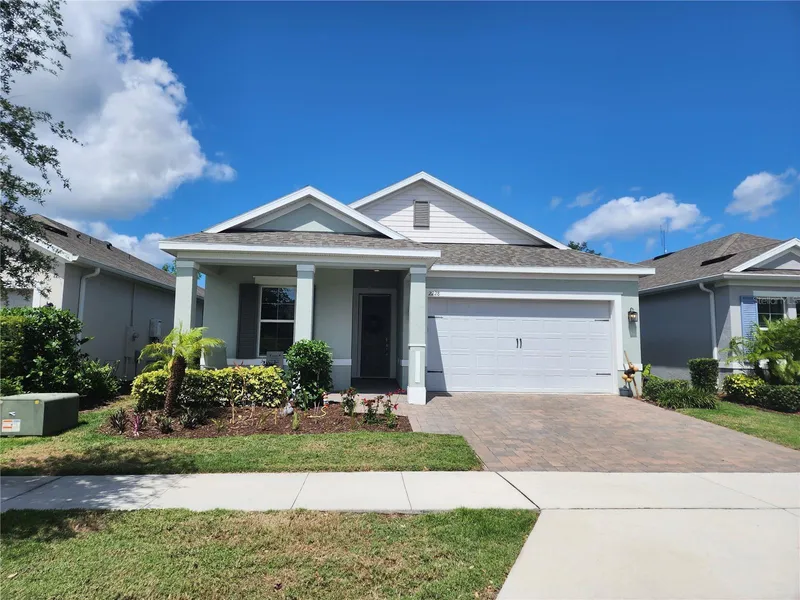 Four Seasons gated community is located just few miles from Disney's Animal Kingdom, Hollywood Studios, Epcot, Magic Kingdom, Margaritaville Sunset Walk, shopping and dining, Celebration & many more with easy access to major highways & entertainment. Spacious open floor plan, perfect for entertaining and spending time together. Professionally landscaped and has ramp style pavers to the front door for wheelchair access. Covered front porch is an additional feature carefully chosen by the owners when building. High ceilings and open floor plan make it an exhilarating factor as soon as you enter through the front door from the sit-front porch. This exceptional home is in a 55+ active lifestyle community and is complete with 3 bedrooms and 2 bathrooms, and 2 full baths. It has a fully equipped gourmet kitchen with stainless steel gas range top, range hood, refrigerator, dishwasher, 42" staggered cabinets with upgraded glass door on one. Ceramic/Tile Flooring throughout the house all throughout without any seams, quartz counter tops or granite countertops in kitchen and baths, transom windows, and much more! Love to cook? The kitchen has a lovely center island with an adjacent dining area to prepare and serve your amazing meals. The owner's suite features a nice sized bedroom with large windows with plenty of natural light, and main suite bath with his & hers sinks, walk-in shower with a built-in bench. The shower here has upgraded tile and no steps down, it is a roll in shower. Meet quality construction at this HERS Certified home, high efficiency A/C system, low E double pane windows, recessed canned lighting in the kitchen, gas tankless water heater and more, a detailed list is available. This floor plan has an extended living room and extended screened-in patio in the back. Patio flooring has been raised for easy wheelchair access in and out. Golf views & Florida sunsets from your swing! Meet new friends at the center - Calypso Cottage Clubhouse which is a 12 thousand sq ft with resort style pool and spa, activity director and daily planned calendar, poolside cabana, fitness studio, crafters room, pickleball courts, tennis courts, bocce courts, lawn for events, walking and biking trails. Schedule your private showing and visit with us today, owner is offering a full year of paid Hoa! Nodal view & video is available.