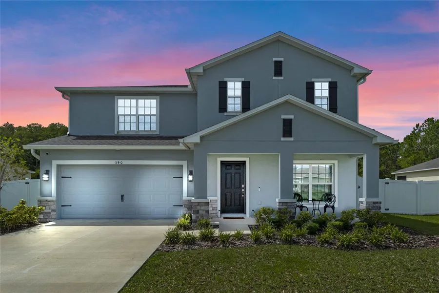 Welcome to your dream home in Kissimmee’s desirable Stepping Stone community! Enjoy the benefits of a newer home without the wait. This stunning six-bedroom, five-bathroom home, with spacious second floor loft is perfect for a large family. The ground floor features an open floor plan with a family room that is open to the kitchen and dining room. The kitchen is the heart of the home and boasts beautiful quartz countertops, large island, touchless faucet and comes complete with stainless steel appliances. Two bedrooms are conveniently located on the main floor, both accessible to full bathrooms. One downstairs bedroom has a private en suite bathroom, ideal for use as a second master bedroom. The upstairs loft area provides additional living space and can be used as a playroom or entertainment area. The master bedroom features a beautiful foyer-style alcove entry, walk-in closet, and luxu...