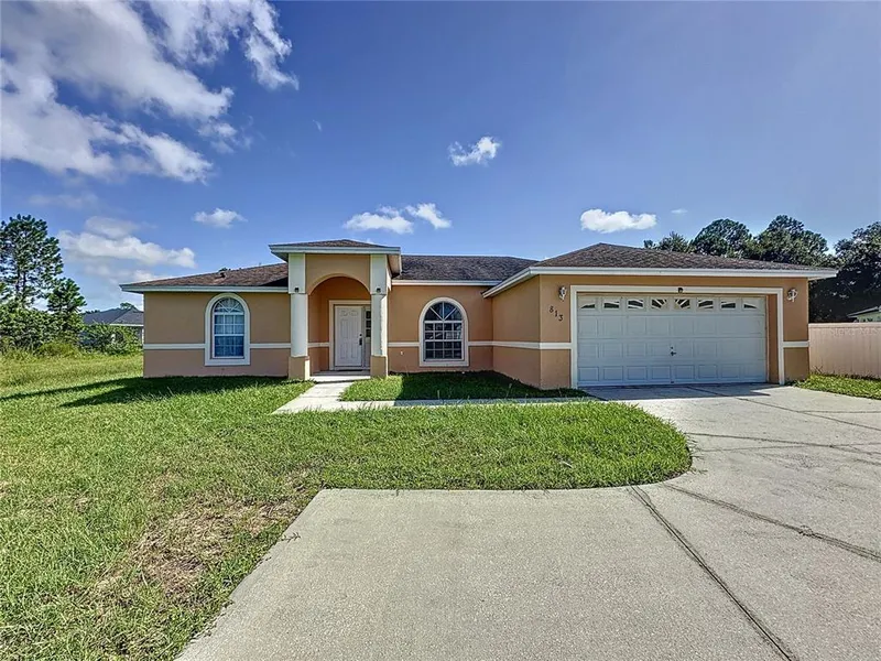 Under contract-accepting backup offers. Welcome to this charming one-story block home nestled on a quiet cul-de-sac in the heart of Poinciana! This well-maintained 3-bedroom, 2-bathroom residence offers a split floor plan with vaulted ceilings, creating an open, airy feel. This home is move-in ready as the exterior was freshly painted (9/2024), and the interior features carpeting replaced a year ago. The kitchen is a chef's delight with wood cabinets, a breakfast bar, and a cozy dinette area. The living and dining areas are perfect for entertaining, while the family room provides a relaxing space. The master suite boasts a walk-in closet, a garden tub, and a separate shower, offering a private retreat. Step outside to the expansive patio, ideal for outdoor gatherings, and enjoy the large backyard with ample space to add a pool or create a perfect play area for your 2 and 4-legged babies. The property also includes a 2-car garage with washer and dryer hookups, the peace of mind of a NEW WATER HEATER installed (9/2024), and a NEW ROOF to be installed before closing. This home is in a prime location, just minutes from top-rated schools, shopping, banks, and dining options. Poinciana is a vibrant community offering an array of amenities, including a Regional Hospital, a Valencia College campus, parks, pools, gyms, and a range of recreational activities. Whether swimming in the Olympic-sized pool, taking a stroll along the walking trails, or enjoying the dog park, Poinciana has something for everyone. Plus, with easy access to the SunRail and major highways, all Central Florida's attractions are within easy reach. Don't miss this opportunity to live in a growing community where you can live, work, and play. Schedule your tour today and make this lovely home yours!
