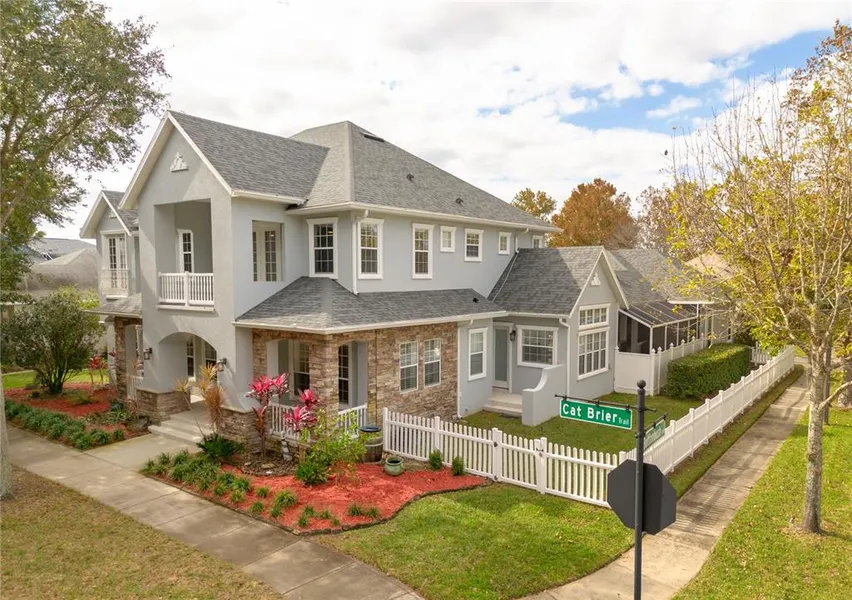 Under contract-accepting backup offers. This stunning Harmony residence offers a rare opportunity to own one of the community's few properties with both a main house and a single-story guest house. The main house spans 3,681 sq ft and includes 4 bedrooms, 3.5 bathrooms, a loft, formal dining room, office, and a grand family room with soaring ceilings that fill the space with natural light. Recently repainted, the exterior welcomes you with a charming front porch, serene golf course views, and a three-car garage. Inside, wood-look tile flooring leads to a first-floor primary suite with sliding doors opening to the pool area, his-and-hers closets, and a luxurious bath equipped with a double vanity, makeup counter, jetted tub, and a large shower with a bench. The kitchen is a chef's delight, featuring a large island, granite countertops, built-in oven and microwave, ample cabinetry, bar-top seating, a butler's pantry, and a cozy breakfast area. Upstairs, a wood staircase ascends to a spacious loft with a balcony overlooking the 5th hole on the golf course, as well as 3 additional bedrooms-one with a Juliet balcony-and 2 full bathrooms. With two newer Carrier HVAC units (2021), a new roof (2022), and two water heaters (2024), this home provides comfort and peace of mind. Outdoor enthusiasts will love the newly added screened lanai, extending the living space outdoors and offering a relaxing setting to enjoy the heated saltwater pool and the new 2024 eight-seater hot tub with a waterfall and Bluetooth stereo. The outdoor kitchen is complete with a smoker, griddle, two burners, and a grill. The guest house, measuring 539 sq ft, is a self-contained retreat with a kitchenette, living area, bedroom, and full bathroom. Harmony is a golf cart-friendly community with a preserve-style golf course, charming shops, miles of trails, 2 community pools, playgrounds, pickleball courts, soccer fields, basketball courts, volleyball court and access to Buck Lake with community owned boats and fishing pier. Located just 35 miles from Disney, Universal Studios, SeaWorld, and Orlando International Airport, this home is a unique find that blends luxury, lifestyle, and location.