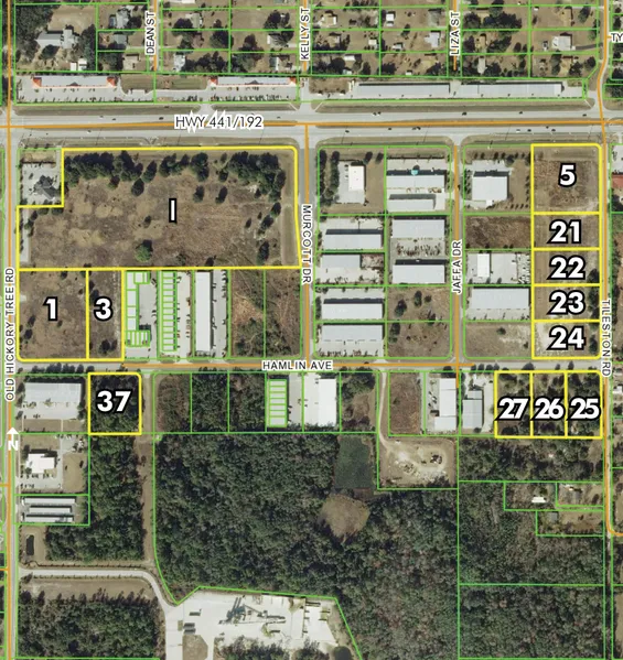 Road frontage: 1,300' on HWY 192/441; 670' on Old Hickory Tree Road; 990' on Hamlin Avenue; 528' on Murcott Drive; ...